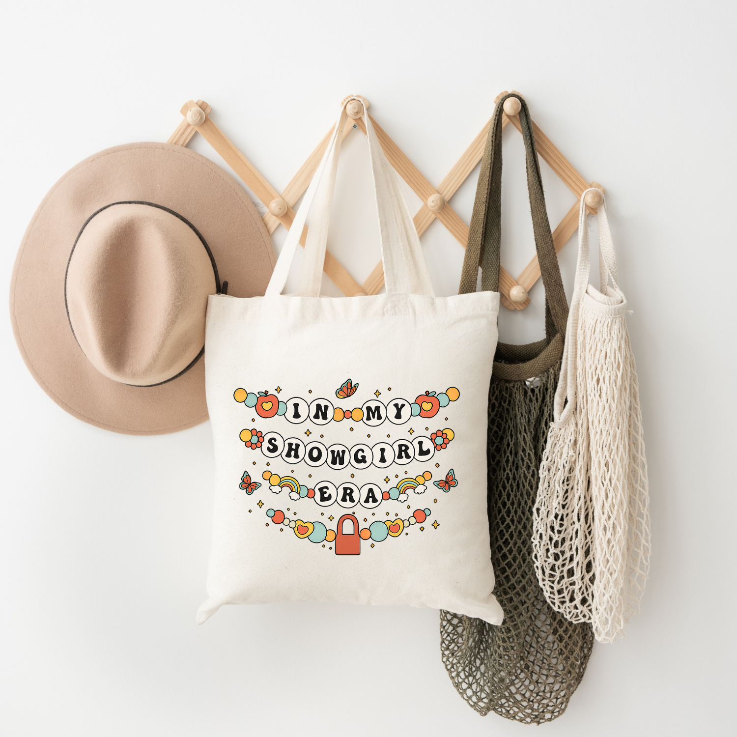 Embrace the nostalgia with our In My Showgirl Era tote bag. This statement piece features a vintage-inspired design, perfect for adding a touch of glamour to your everyday style. Made with high-quality materials, it's both functional and stylish. Relive the magic of the past with this must-have accessory.