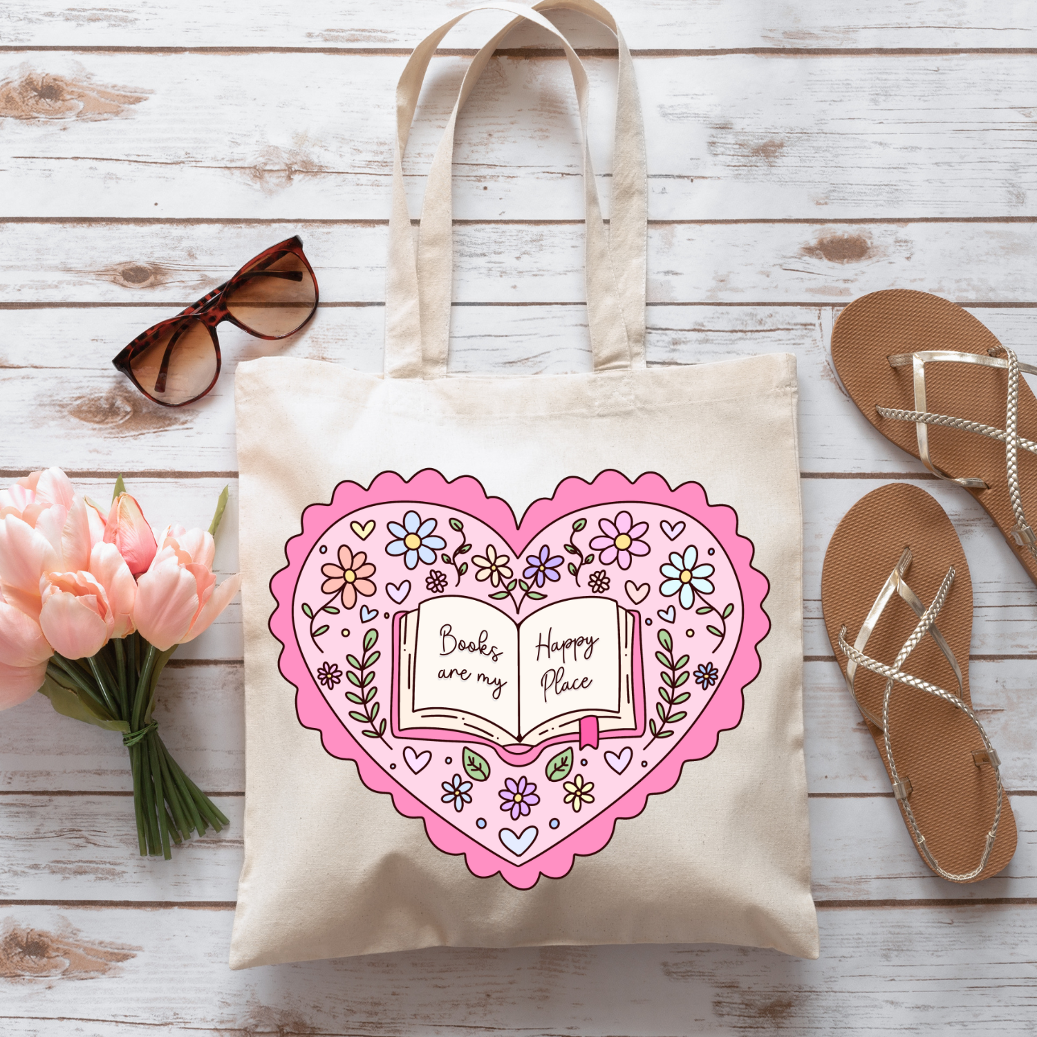 Celebrate your love for reading with a touch of charm using the Pink Books Are My Happy Place tote bag. Designed with durable fabrics and ample space, this tote comfortably carries your favorite books and daily essentials. Its playful pink design reflects your passion for literature, making it a stylish and practical accessory for book lovers who find joy in every page.